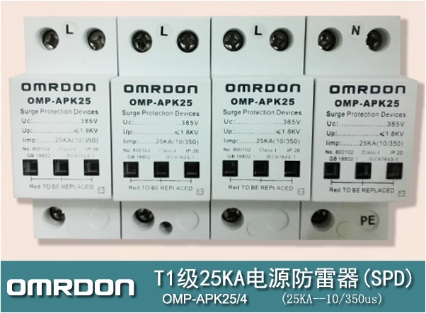 歐姆雷盾(OMRDON)25KAI級電涌保護器(Surge Protection Device,簡稱SPD)(又稱防雷器、避雷器、浪涌保護器、過壓保護器),具有高雷電通流能力,適用于交流380V(50Hz/60Hz)及以下的TN-S、TN-C-S、TT、IT等供電系統因雷擊而產生的電磁脈沖(EMP)保護,用于雷擊區域的LPZ OA或LPZB區與LPZ1區交界處.